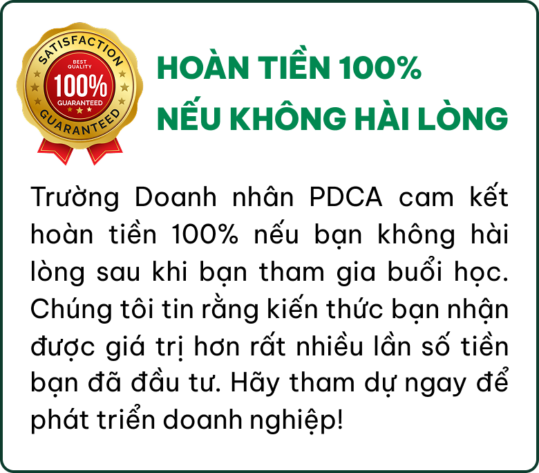 Bạn chỉ cần nhấn nút “Đăng ký ngay” và tiến hành đăng ký & chuyển khoản theo hướng dẫn. Hệ thống sẽ gửi thông tin truy cập khoá học ngay tới Email của bạn và PDCA sẽ gọi điện để mời bạn vào Group Zalo bắt đầu hành trình.