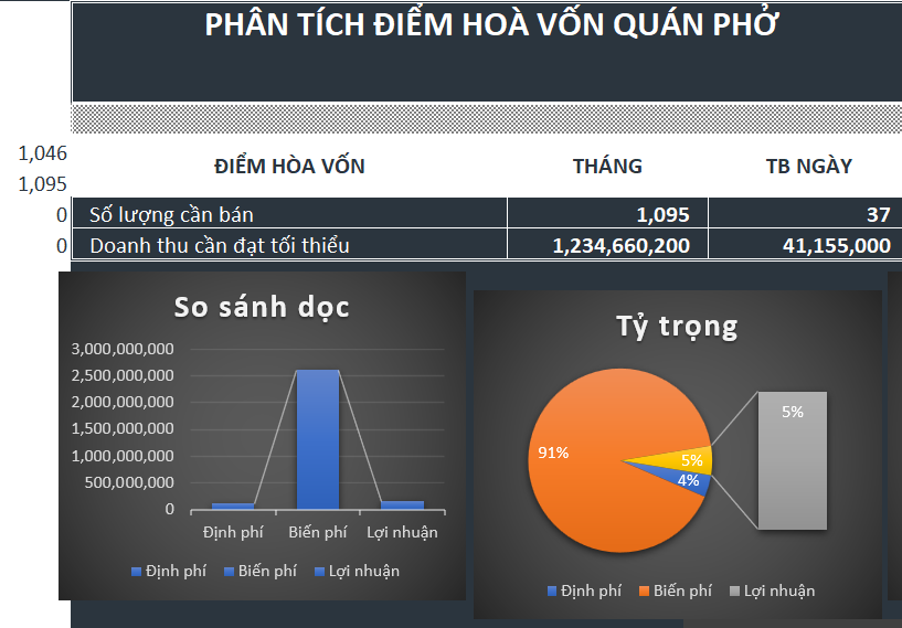 Thay vào đó, Dũng và anh ngồi xuống tính một bảng Điểm Hòa Vốn.